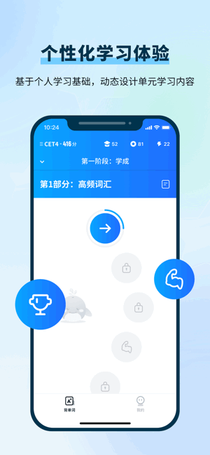 背duo分单词软件是提供英语单词学习记忆的应用app,可以根据个人学习基础设计专属的单词学习内容,还提供关联助记法,帮助大家更加高效的记忆,支持多种学习题型,边背单词边锻炼考试能力,更可以智能预测成绩,轻松掌握学情!