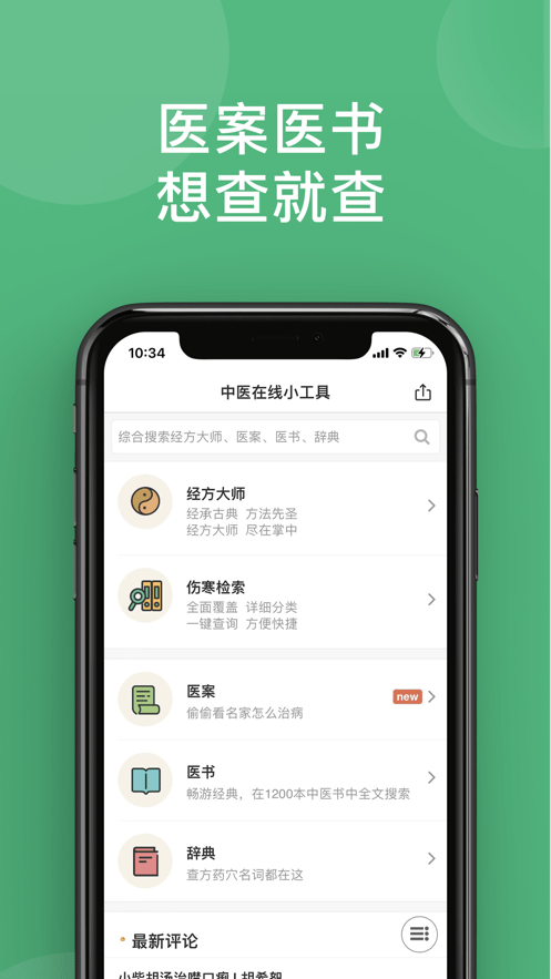 中医工具,为中医学习、工作设计了医案、医书、辞典等工具;