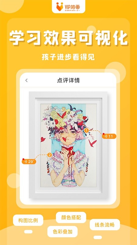 VIP陪画app是一款好用的美术陪练软件,VIP陪画app专注少儿美术培训,拥有专业的美院老师,VIP陪画app一对一教学,为孩子打造优质的绘画课程。VIP陪画在线少儿美术是专注于3-18岁青少儿的在线美术教育,以“培养未来世界艺术小公民”为使命。
