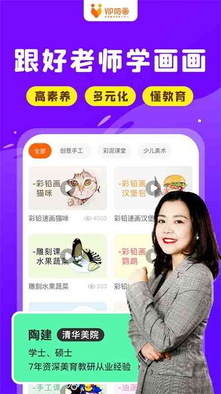 VIP陪画,好用的美术陪练软件,专注少儿美术培训,专业美院老师在线提供美术指导,为孩子打造最优质的美术课程,软件结合多年教育培训经验,针对不同学龄儿童开展不同的美术培训方式,培训更专业高效,有需要的用户可以下载使用!