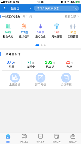 鼓楼智脑官方版是专门为鼓楼区城市管理提供办公服务的应用平台,带来一站式解决方案,覆盖多个方面,不同种类,全面监测社会机构、重点楼宇、重点企业、河长管理等,及时处理相关业务,上报分析、考核,数据详情一手掌握,高效管理办公!