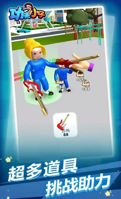 《功夫小子》是一款超有趣的放置休闲游戏,简单又容易上手,老少皆宜。游戏里的主角是个举重小英雄,各种奇葩道具都能用来举重,比如铅笔、树枝,甚至超市推车和火箭!通过不断举重,你可以强化肌肉,变得更强大,最后还能举得起整个地球呢!关卡任务丰富多样,每次挑战都有新的目标和要求,玩起来 totally 不会无聊。游戏里还有对抗模式,增加了不少乐趣,而且锻炼的肌肉还可以卖掉买更重的道具,效率 super 高!画面是简约卡通风格,看起来很舒服,场景也很多样化,每个地方都能带来新鲜感。总之,这是一款让人上瘾的游戏,适合闲暇时放松玩一玩,简单又有趣,根本停不下来!