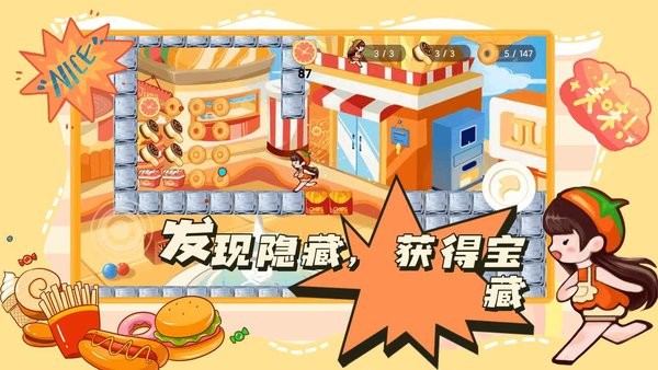 这个游戏看起来挺有意思的。你扮演一个美食少女,在各种美食主题的场景里跑酷,收集甜甜圈金币,避开障碍和怪物。关卡设计得很丰富,还有隐藏宝藏可以发现,打碎砖块闯关也是个挑战。