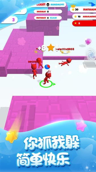 一个魔性搞笑的追捕小游戏,游戏中一共分为两个阵营,一个是红色的小人,另外一个是蓝色的小人,游戏的规则很简单,蓝色小人被抓到之后也会变身成为红色的小人,然后再来抓自己的同伴,虽然很残忍,但是游戏的规则就是如此,画面简洁,地图很大,非常考验你们的灵活反应能力。