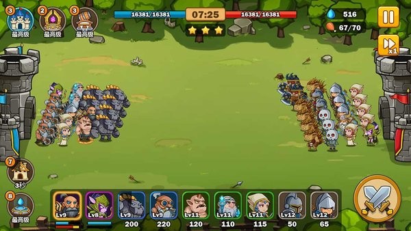 2、不超过8分钟的对战时间,玩家放置英雄,用最爆的战术轻松击败敌人。
