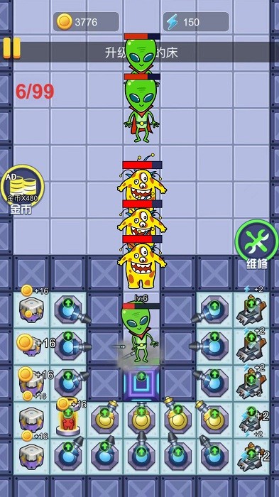2、在地图中会有多个玩家,每个人都会有一个房间,随着游戏的不断进行,外星人会越来越强大;