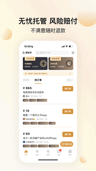 最让我觉得贴心的是它的无忧托管和风险赔付机制,这样即使出现问题也能及时解决,保障了双方的权益。同时,app还提供了即时通讯功能,让沟通变得无障碍,这对于设计师和客户来说都非常方便。