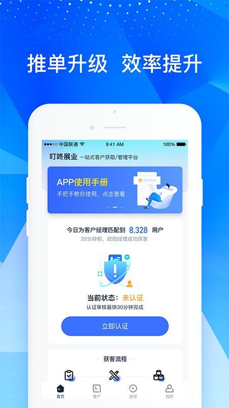 叮咚展业平台是一个专为信贷经理设计的移动工具,帮助他们快速找到客户并提升工作效率。它提供多种功能,比如好单提醒、一手客户、海量真实订单等,让信贷员更容易获取客户。软件界面简单直观,每个页面都有对应的功能可以解锁,满足不同需求。特别是智能匹配和实时推送优质客户的功能,省心又方便。