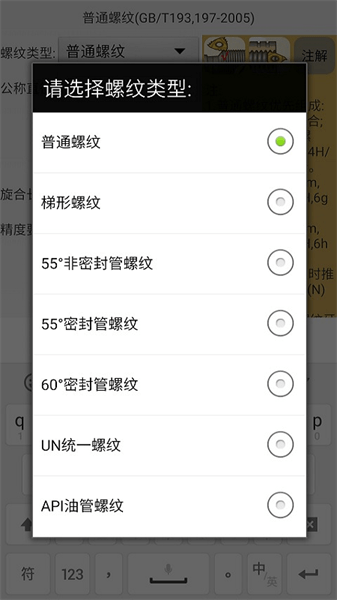 1、螺纹类型,用户可以根据自己的需求,自由在应用中选择需要的类型进行查看;