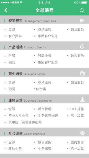在这款沃运营随身学中,联通智慧沃家、主副卡等业务已有相关课件,员工能轻松找到答疑解惑的知识点,实现自我能力的提升。
