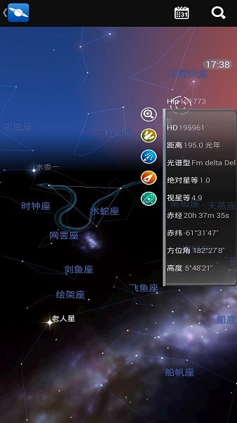 需作的所有工作只是将你的手机指向太空,该星图将准确地指出你正在观看的天体。