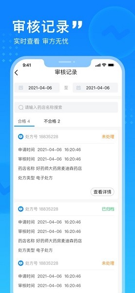 -- 药师可以通过APP快速查看处方详情,包括患者信息、药品列表、用法用量等,提升审方效率。