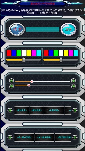 翼龙尾灯app是一款小巧实用的手机工具,专门用来控制和管理翼龙尾灯。它通过蓝牙连接设备,操作简单直观,界面设计也很友好。软件提供了多种模式和颜色选择,让用户可以根据自己的喜好自由调整尾灯效果。比如运动模式、转向模式、刹车模式等等,每种模式都有不同的灯光显示,看起来特别炫酷。