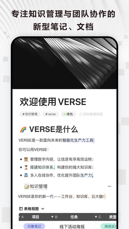 Verse是印象笔记全新推出的面向未来的智能化生产力工具。
