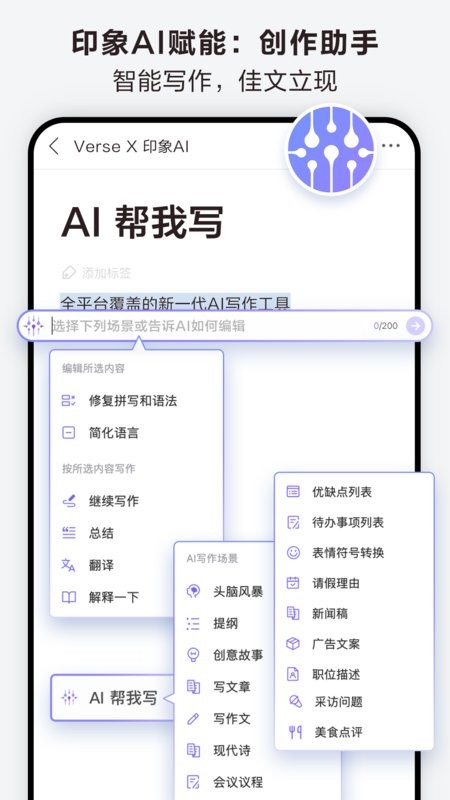 -- 印象ai赋能:创作助手,智能写作,佳文立现
