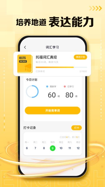 3、词汇学习,大量英语词汇练习,每日计划背单词,在线打卡