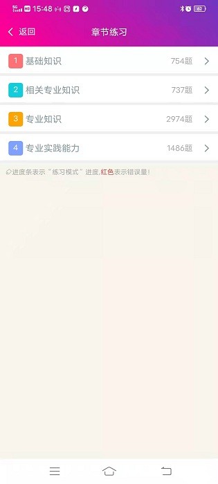 5、平台向用户推送免费的章节练习题,可以逐个的查看之后即时的选择练习;