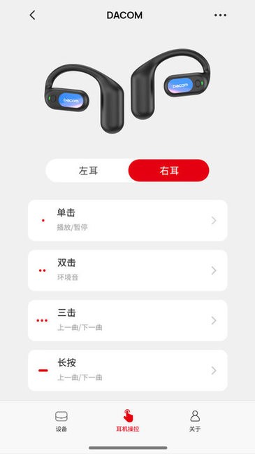 dacom手机版是一款搭配使用无限智能蓝牙耳机设备的应用软件,提供均衡器、查找耳机、游戏模式、固件升级等功能,一键适配连接,自由设置管理,轻松操控耳机,支持单击、双击、三击、长按模式,操作简单易上手,好用又方便!