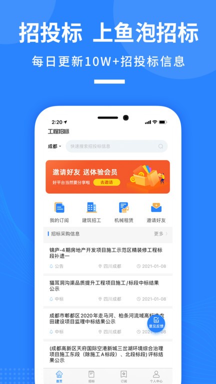 3500+招标数据源,鱼泡招标app日新增10万+信息。