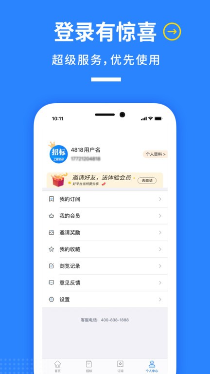 招标推送:全国招标信息随心订阅,随时随地即时推送,定制招标项目批量导出。
