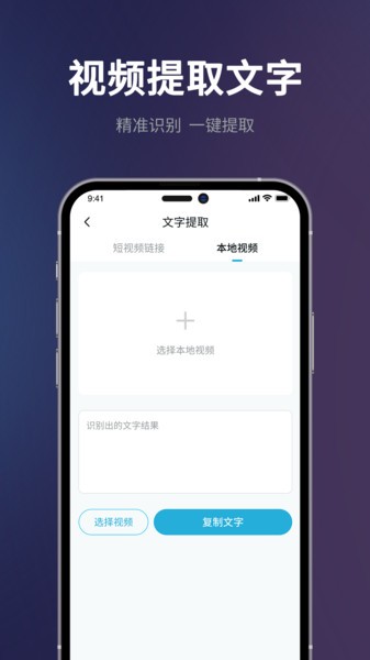 视频提取文字功能支持通过各大短视频平台分享链接粘贴,也可以通过手机本地上传视频。APP可以对用户提供的视频进行转文字提取处理。