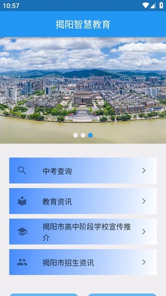 打开揭阳智慧教育app后,点击第一个的“中考查询”,如图所示;