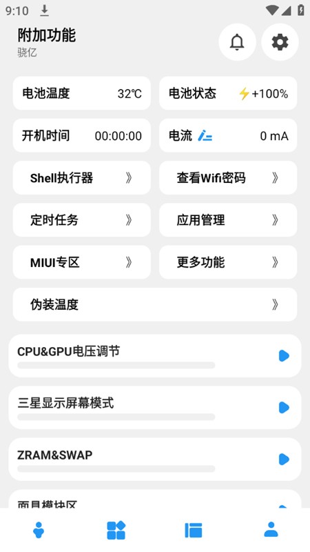 -- 除了调度之外,本APP还集成了一些实用小功能,比如各大厂的负优化拜拜、品牌专区、好用面具模块分享、三星(主要是)亮屏快充,以及一些常用的各种手机自定义和修改参数的小功能集合。