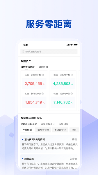 整合数字资源与服务,提供数字化精选移动工具,与数字化能力及专家服务相结合,满足用户日常工作相关咨询、数据、工具、产品、解决方案的需要,助力用户高效工作,实现一站式解决方案。