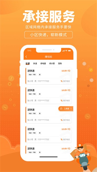 小哥之家app是一款非常实用的手机物流办公软件,主要帮助物流小哥们接单和跑腿,让他们能赚到更多收入,同时也能让用户得到更好的服务。这个平台覆盖全国410万网格,精准服务于企业和社区居民,还能帮小哥创业就业。它的亮点包括便捷、专业和安全:可以随时预约下单,智能匹配订单;所有服务人员都是平台优选并经过培训; everyone’s身份信息都实名认证过。
