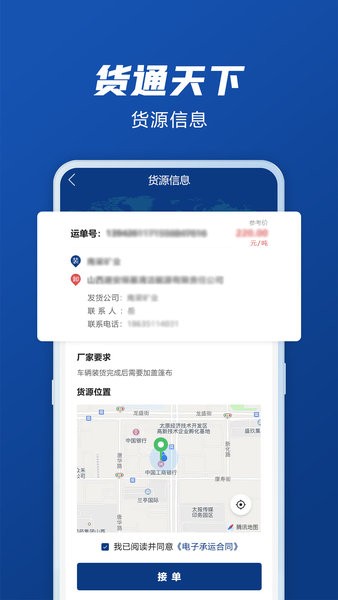 货通天下司机版为司机用户带来更多的货源,在软件之中拥有海量的货源可以让用户选择,帮助用户轻松的接单,还有详细的货源信息可以在软件之中查看,让司机随时可以开始运货。