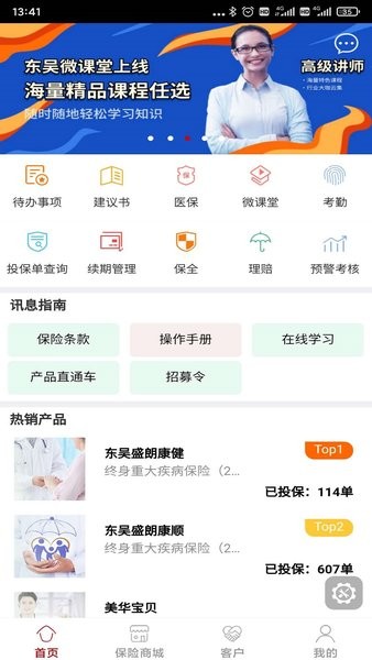 这个app看起来真的很实用,特别是对于东吴人寿的业务员来说。它不仅能用来打卡考勤,还能管理客户、处理理赔、发起活动,功能挺多的。最让我觉得方便的是微课堂,可以随时学习产品知识,提升业务能力。还有建议书模板,能根据客户需求快速生成计划书,省了不少时间。听说这个app还能提醒生日和业绩数据,人性化设计得很到位。总体来说,这款工具对业务员的帮助很大,特别是那些需要经常外出展业的同事,应该会用得非常顺手吧!