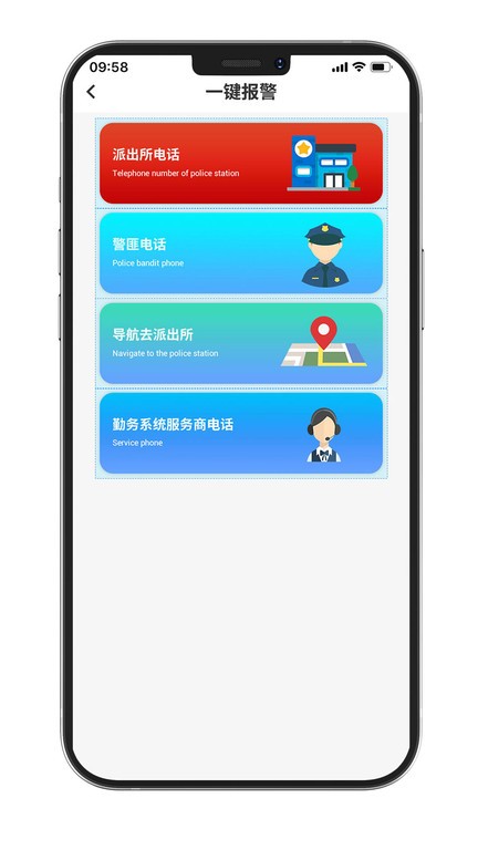 6、一键进行报警,让报警更方便,解决各种民事问题,提高警察服务的质量,让人们的生活更安全;