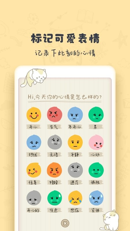 总有一个表情能代表你今日的心情,当你遇到心事但不知如何表达时,在这里,可以轻松标记每日的心情