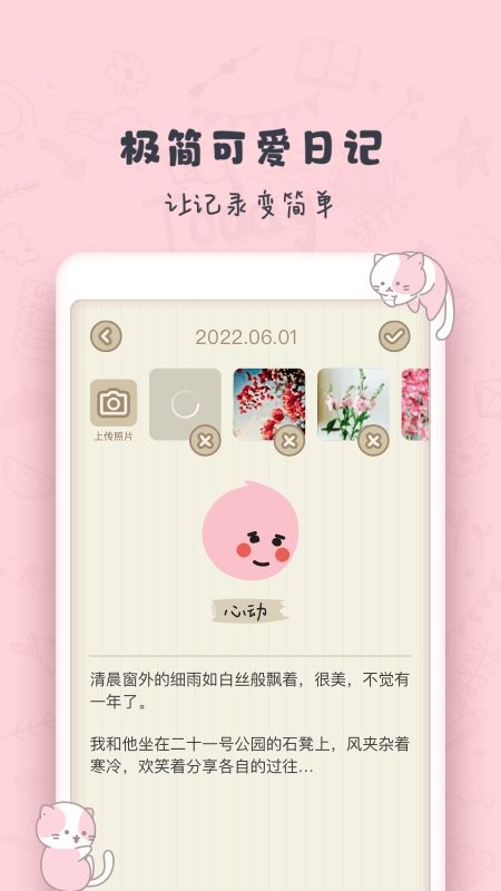 倾听你的情绪,守护你的秘密,时光日记为您提供心情记录功能!
