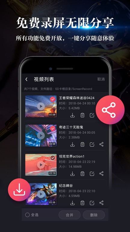 游戏录屏app是一款免费录屏软件。让你录屏无水印、无时长限制,同时支持一键视频转发,可以将屏幕录制的视频发布各平台。并且提供免费视频剪辑功能,录屏完成可以直接进行剪辑。录屏软件体积小巧,采用高清视频编码技术,让您可以无忧记录游戏、娱乐瞬间,不用担心手机存储空间。同时提供多样的游戏视频模版,更多优质的录屏功能等你来体验。