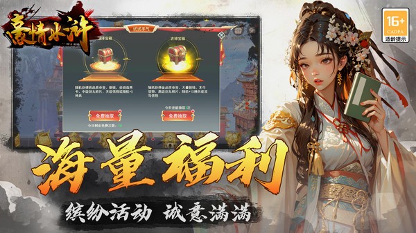 《豪情水浒》是一款以《水浒传》为背景的3D即时对战卡牌手游。玩家扮演时空穿越者,从梁山起家,招募草莽英雄,通过策略和战斗逐步壮大势力,最终改变历史。游戏拥有100多个精心设计的好汉角色,每个都有独特的技能和成长路线,玩法多样,包括组队挑战、跨服竞技、Roguelike冒险等。还有坐骑养成、藏宝图探索等多种趣味系统,让玩家体验丰富的社交和策略乐趣。战斗画面华丽酷炫,打击感十足,操作简单流畅,适合喜欢即时策略和卡牌收集的玩家。我个人觉得这类游戏特别适合和好友一起玩,既能 strategize 又能增进感情,而且游戏福利也不错,可以解锁很多稀有装备和道具。如果你是《水浒传》的粉丝或者喜欢策略战斗,这款游戏绝对值得一试!