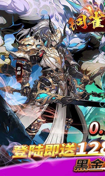 《铜雀三国》是一款三国题材的横版卡牌手游。游戏主角在神秘的三国世界闯荡,会遭遇一系列的神秘关卡和各种强大的敌人。本作包含激情炫酷的战斗,个性鲜明的三国名将,史诗感炸裂的三国城池攻防战,横扫千军的武将战技以及造型各异的绝世神兵和各种奇珍异兽等。随着在不断探索深入,主角终会终会拼杀出属于自己的道路,最终带领自己组建的部队登临顶峰。