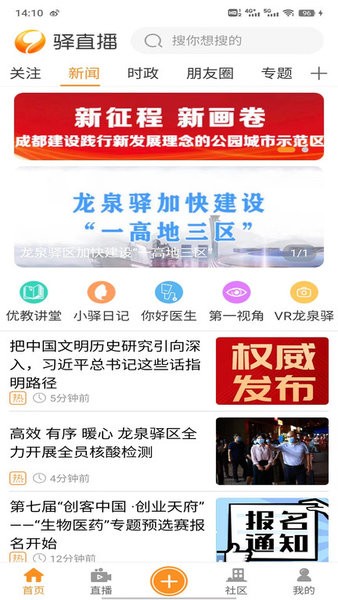 驿直播app为用户带来更多的融媒体功能,许多的新闻直播随时都可以在软件之中进行观看,帮助用户了解龙泉驿本地的更多新闻资讯,还有许多的生活服务随时都可以让用户生活更加的便利。