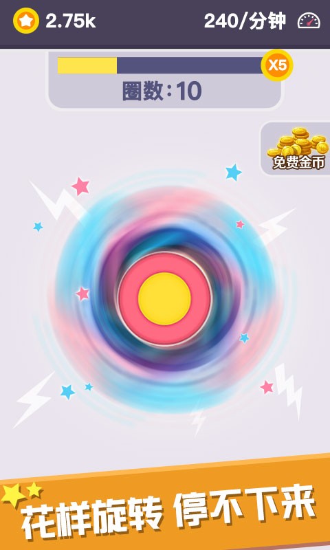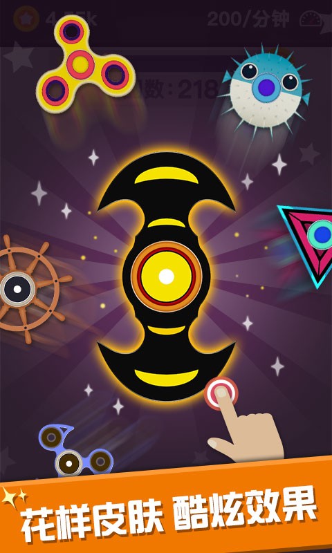独特陀螺玩法魔性的旋转变化,还会出现反向旋转和静止不动的“视觉暂留”效应哦; 每次等级提升都会解锁一款全新的炫酷样式。 真实模拟,休闲解压,在不停地旋转中放松自己,在放空自己的同时释放压力。 超多样式,想玩就玩,30种酷炫皮肤免费体验;急速旋转,挑战旋转极限。