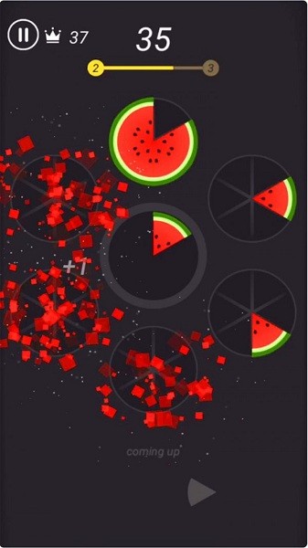 2、融入了非常益智的游戏合集,玩家要将不同形状的水果拖放到外侧的圆中,并填满这个圆性触发消除并得分。