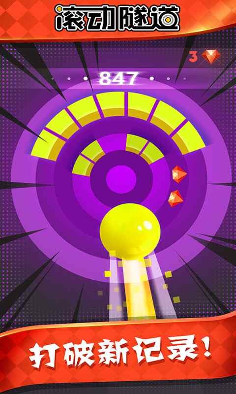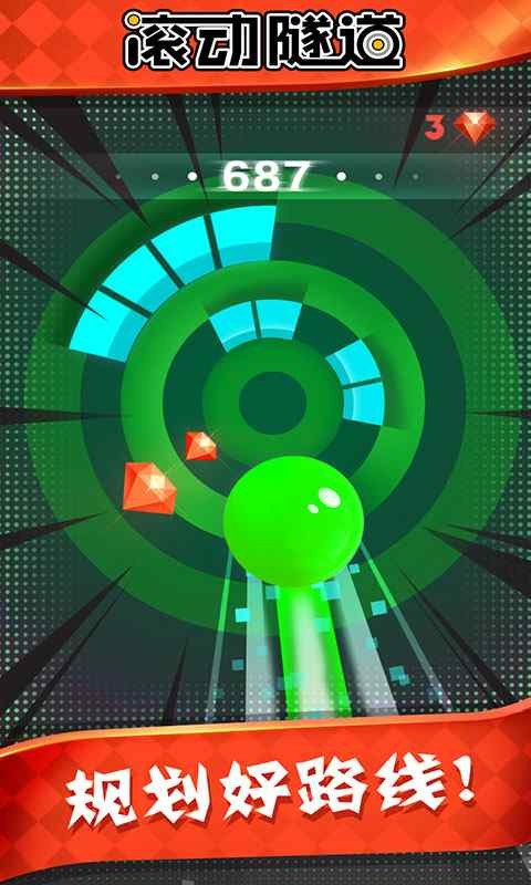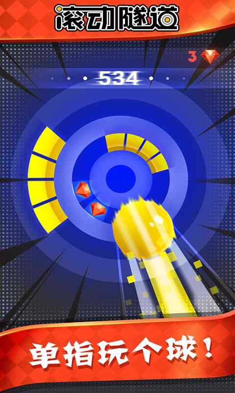 重力感应类型控制玩法,在炫目的隧道中小球进行极限滚动,全新游戏体验。