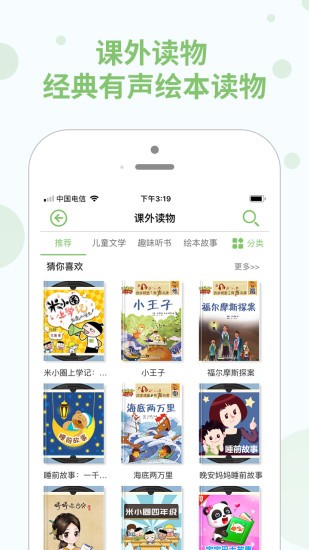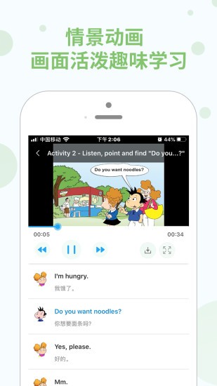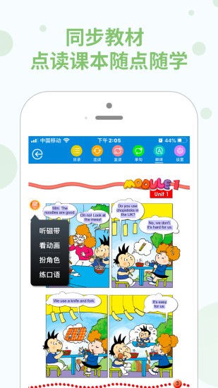 2、可以点读课本,哪里不会点,还能播放读音,边听边学;