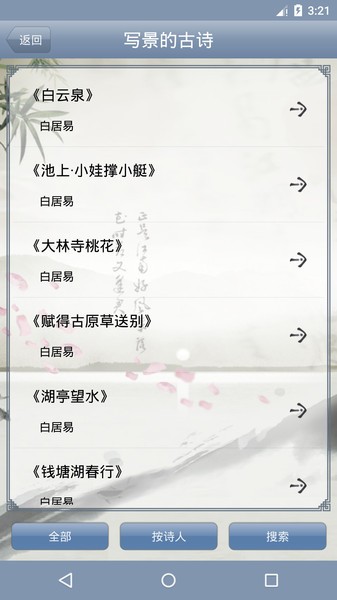 1、按诗人筛选查找古诗,支持点击按诗人功能标签根据诗人来筛选查找古诗;