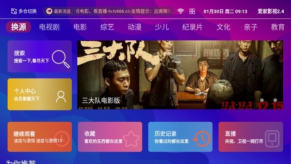 爱家影视app电视版这又不知道是哪位良心大神制作的看电视软件;它既可以看电视直播,央视卫视、港澳台电视全部可看;还可以点播资源,最新最热电影、电视剧、动漫、综艺,全部可以点击播放,不要一分钱。
