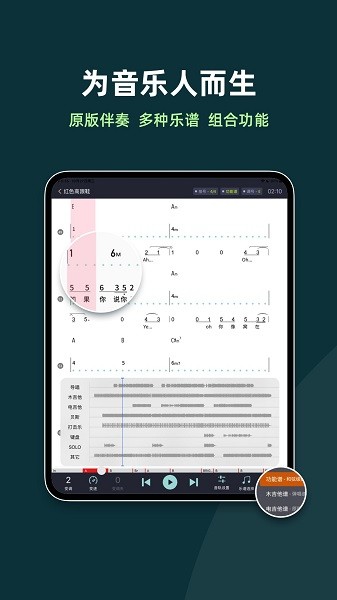 -- 伴奏和乐谱都可变调变速,让演奏和练习更加方便