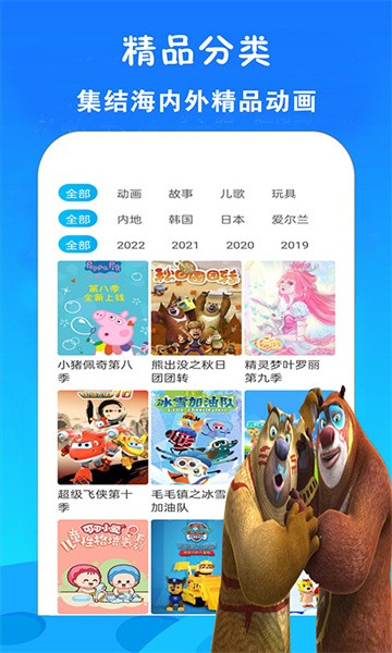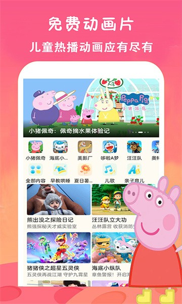 这里有儿童喜爱的热播动画片大全、睡前儿歌童谣大全、经典故事大全、儿童动漫大全等儿童成长免费神器!《小猪佩奇》《汪汪队立大功》《飞狗MOCO》《海底小纵队》《迷你特工队》《太友和萌鸡小队》《熊出没》《喜羊羊与灰太狼》《小公主苏菲亚》《海绵宝宝》等一大波超级经典动画片,内容精彩丰富,动画鲜活有趣,全场免费观看,让宝宝尽情享受动画时光,在快乐的氛围中慢慢成长!