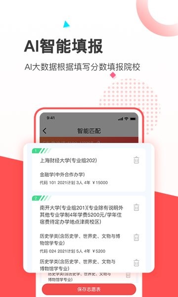 高考志愿填报推荐根据智能AI算法,精准匹配院校、省份、地区等信息变量。用更快的速度整合报考数据,帮考生用户规划冲稳保梯度填报顺序,降低填报风险做到科学填报。