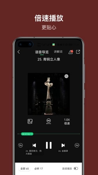 这个三星堆讲解app听起来挺有意思的,是个专门给三星堆博物馆设计的解说软件。它里面有64件重点文物的语音讲解,总时长110分钟,能让人深入了解三星堆的历史和文化。我觉得挺方便的是可以直接在手机上听讲解,而且还能用AI技术识别文物,感觉科技感十足。