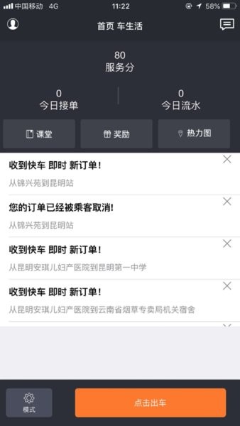 在软件首页登陆你的司机账号,然后接取周边的订单,开始你一天的网约车服务。