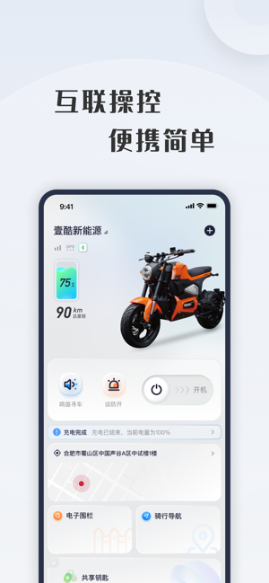 壹酷新能源app手机版是一款搭配电动车使用的骑行管控软件,一键连接,互联操控,操作简单。可以实时监测电动车骑行状态,地图定位位置,还提供鸣笛寻车、设防、电子围栏、骑行导航等功能,记录历史轨迹,及时统计数据,智慧出行!